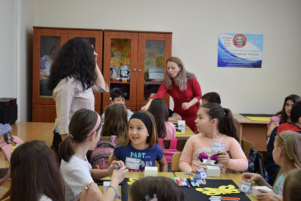 IK UP "Krste Misirkov-Kërçovë" realizoi me sukses tri pjesët e punëtorisë gjithëpërfshirëse të artit multikulturor të organizuar me rastin e 28 majit - Ditës Botërore të Fluturave, me titull "Ngjyrat e Fluturave" Ky ishte një tubim unik me buzëqeshje, ku fëmijët pjesëmarrës përfshinin edhe fëmijët me nevoja të veçanta nga shkollat fillore të Komunës, me punë në grup dhe këtë herë ata shfaqën kreativitetin e tyre përmes punimeve të tyre. Shpresojmë që me këtë ngjarje të kemi kontribuar për Komunën tonë të Kërçovës në sferën e jetesës multikulturore të popullatës së re, duke përfshirë edhe fëmijët me nevoja të veçanta. Ne punonjësit si ekip nga institucioni, me ndihmën e bashkëpunëtorëve-ekspertëve të jashtëm, realizuam me sukses këtë projekt sipas Programit të Punës të institucionit. Dhe sigurisht nuk ndalemi me kaq!!! Galeria e fotove nga eventi