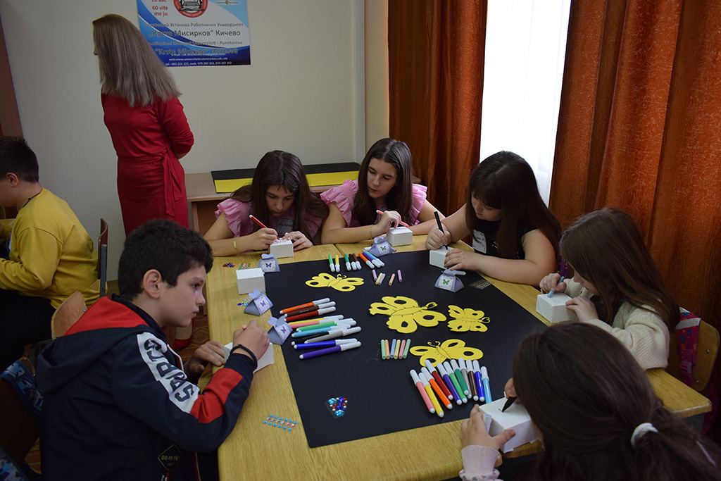 ОУ РУ ,,Крсте Мисирков- Кичево, успешно ги реализираше трите дела од инклузивната мултикултурна арт работилница организирана по повод 28 Мај –Светскиот ден на пеперутките, со наслов ,,Боите на пеперутките“. Ова беше едно уникатно дружење со насмевки, децата учесници инклузивно со децата со посебни потреби од Основните училишта од Општината, со групна работа и овој пат ја покажаа креативноста преку нивните арт-творби. Се надеваме дека со ова случување придонесовме за нашата Општина Кичево во делот на мултикултурното живеење на помладата популација, вклучувајќи ги децата со посебни потреби. Ние вработените како тим од институцијата, со помош на надворешните соработници-стручни лица, успешно го реализиравме овој проект согласно Програмата за работа на институцијата. И секако не застануваме тука!!! Галерија на фотографии од случувањето: