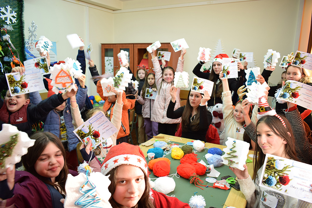 Të katër pjesët e punëtorisë “Topat dekorues për Vitin e Ri” u realizuan me sukses, kjo ishte një miqësi e paharrueshme, ku morën pjesë pjesëmarrës të moshave të ndryshme dhe në secilën pjesë u përfshinë fëmijë me nevoja të veçanta. Magjia e Vitit të Ri u arrit me buzëqeshje dhe këngë, u bënë dekorime për pemën e Krishtlindjes, e cila shkëlqente nga pufkat e ngjyrave të ndryshme. Dhe kjo punëtori u mbështet nga Ministria e Kulturës në kuadër të Projektit “Kreativiteti nа lidh – punëtori gjithëpërfshirëse dhe multikulturore” të Industrive Kreative, si Projekt me interes kombëtar në kulturë.